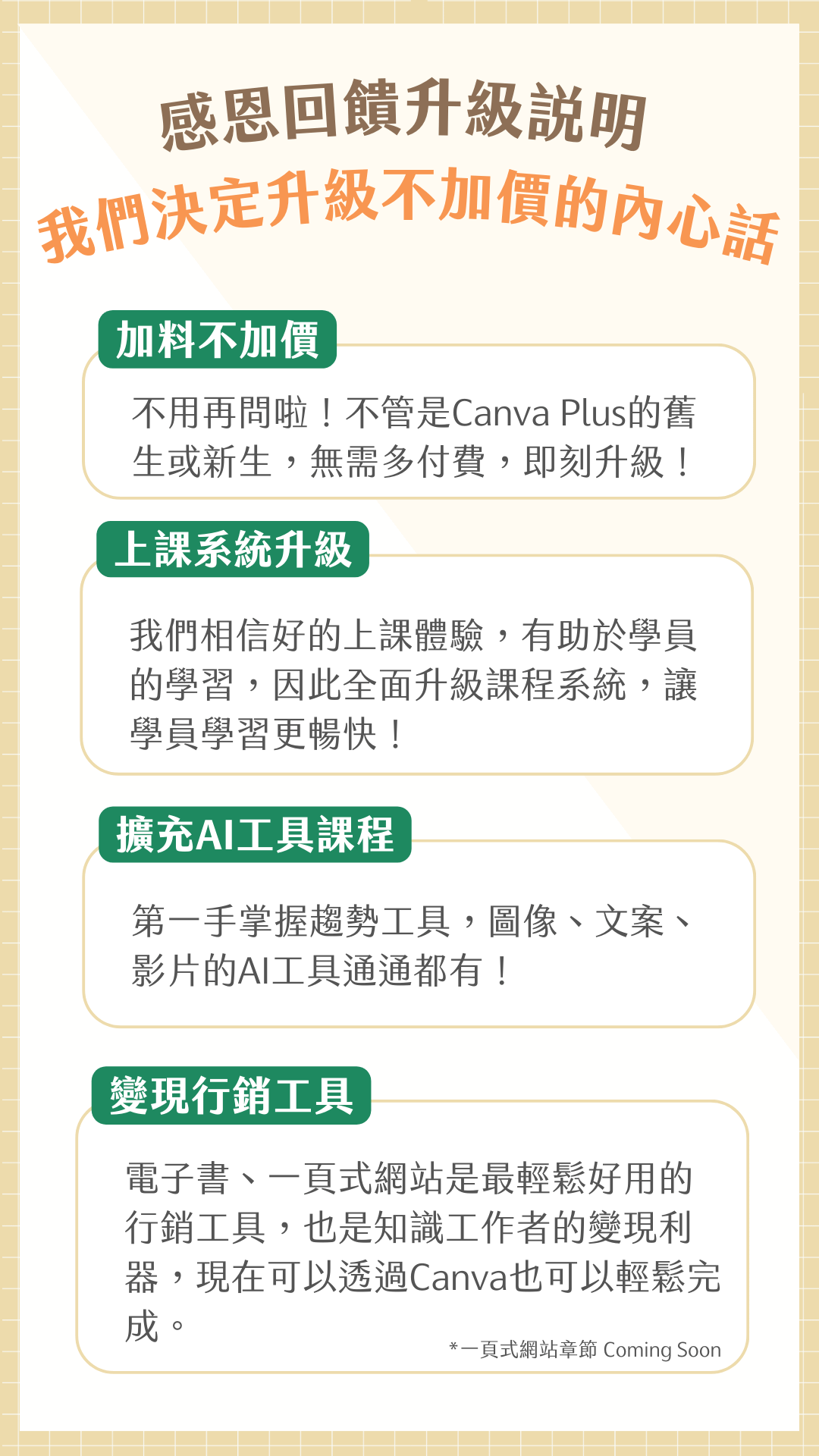 這堂課程除了教你Canva怎麼用,還包含了
