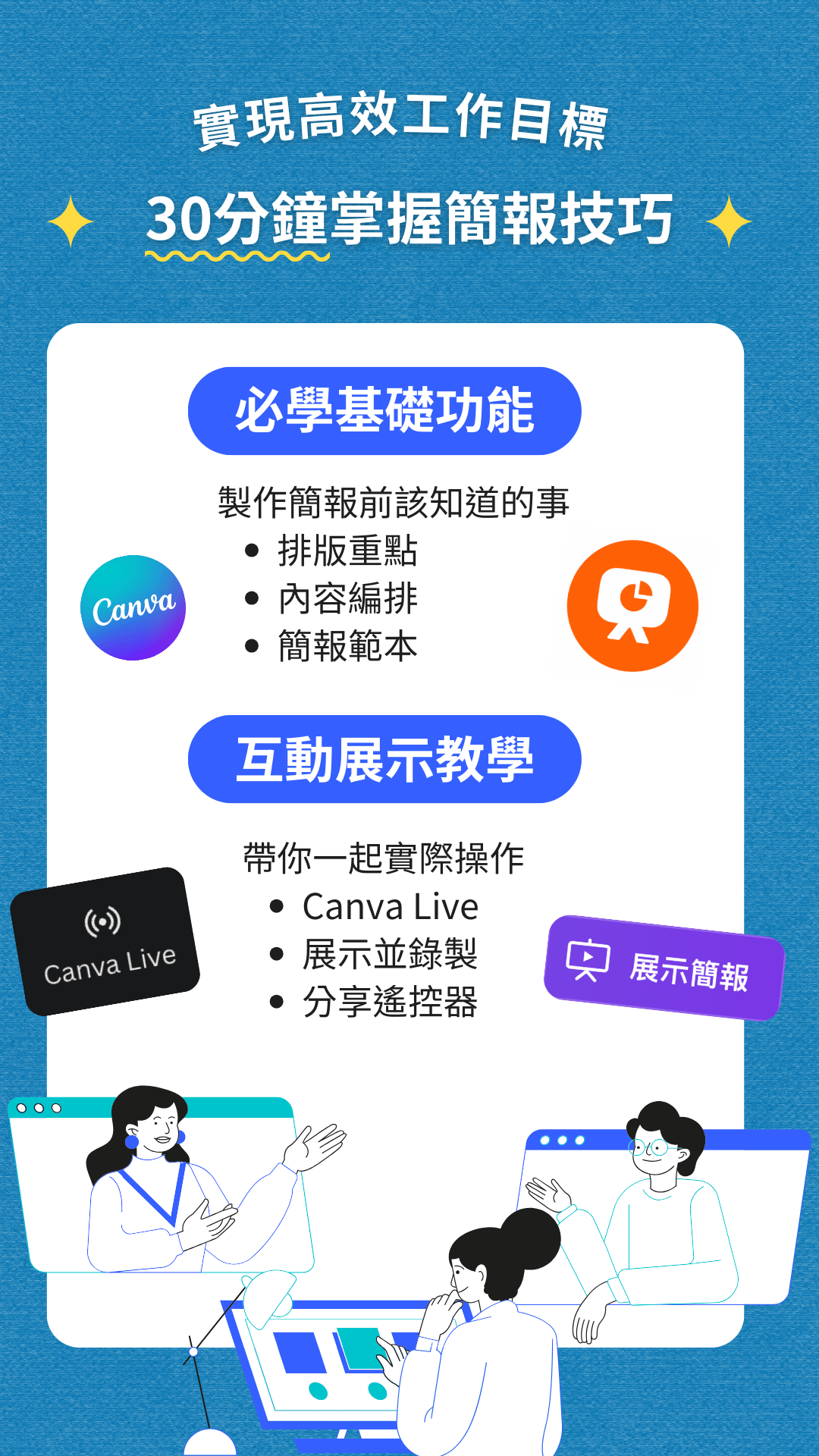 Canva Plus課程是華語圈內最完整的Canva教學,從免費到付費功能的操作都會和大家分享
