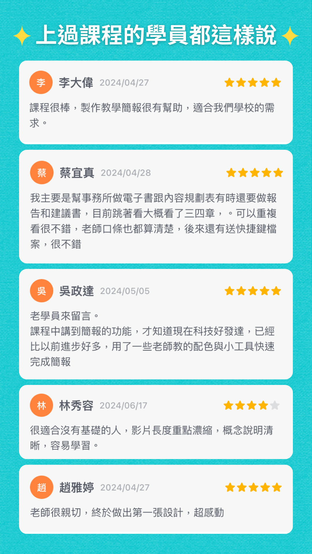 老師和課程小助教會盡快在群組上協助回答您的相關詢問上面也有很多熱心熱情的學員們一起互相學習唷。