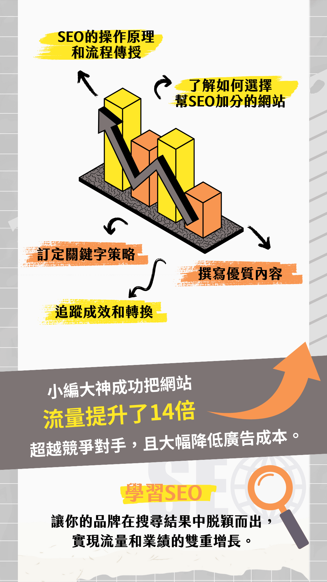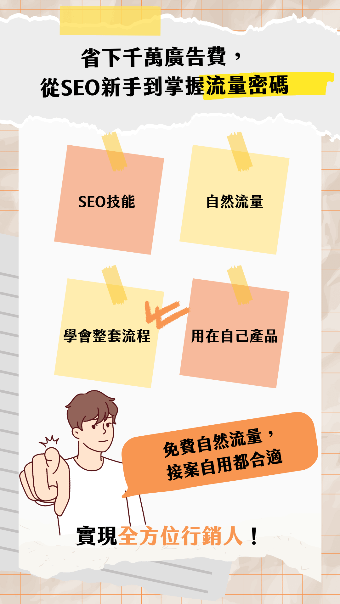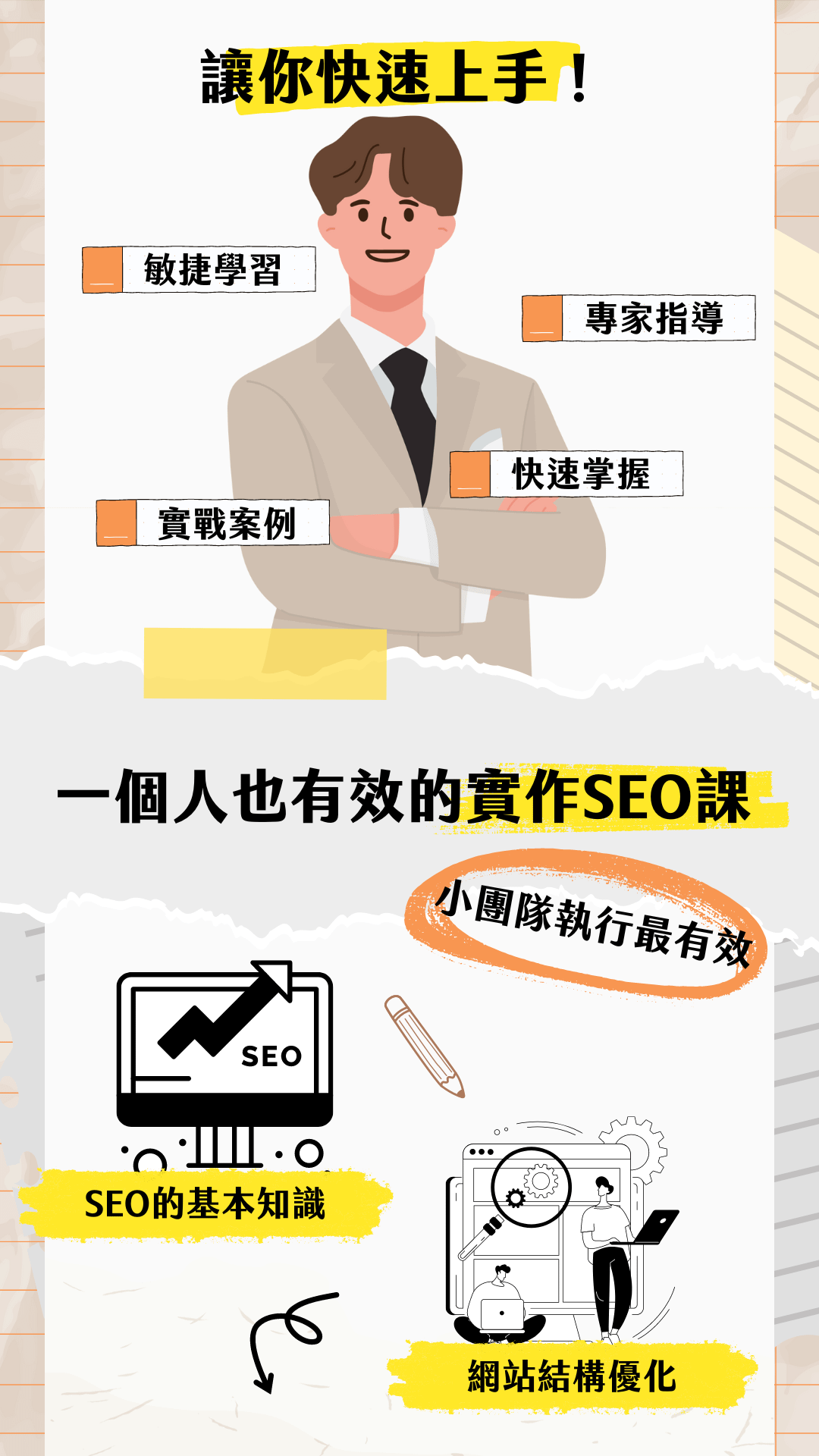 從搜尋策略、關鍵字規劃、內容撰寫實戰、成效追蹤全流程通通交給你