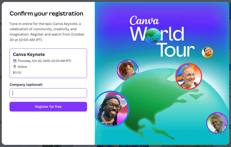 Canva悄咪咪在英文的首頁官網公佈了一個重要活動!
