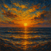 ``` An oil painting of a sunset over the ocean, thick brushstrokes, vibrant colors, impasto technique, rich textures, classical painting style ```