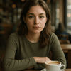 ``` A photorealistic portrait of a woman sitting in a café, soft natural lighting, shallow depth of field, professional photography, high detail, realistic skin texture ```