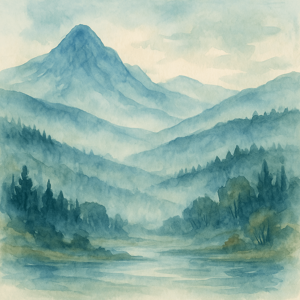 ``` A watercolor painting of a mountain landscape, soft gradients, translucent layers, flowing paint effects, artistic brushstrokes, peaceful scenery ```